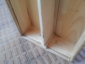 Comienzo a construir la estructura de los cajones, para ello uso la madera laminada y para la base de los cajones uso la madera fina de las  tapas de las cajas de vino. Todo va encolado y clavado con los calvos de la grapadora.